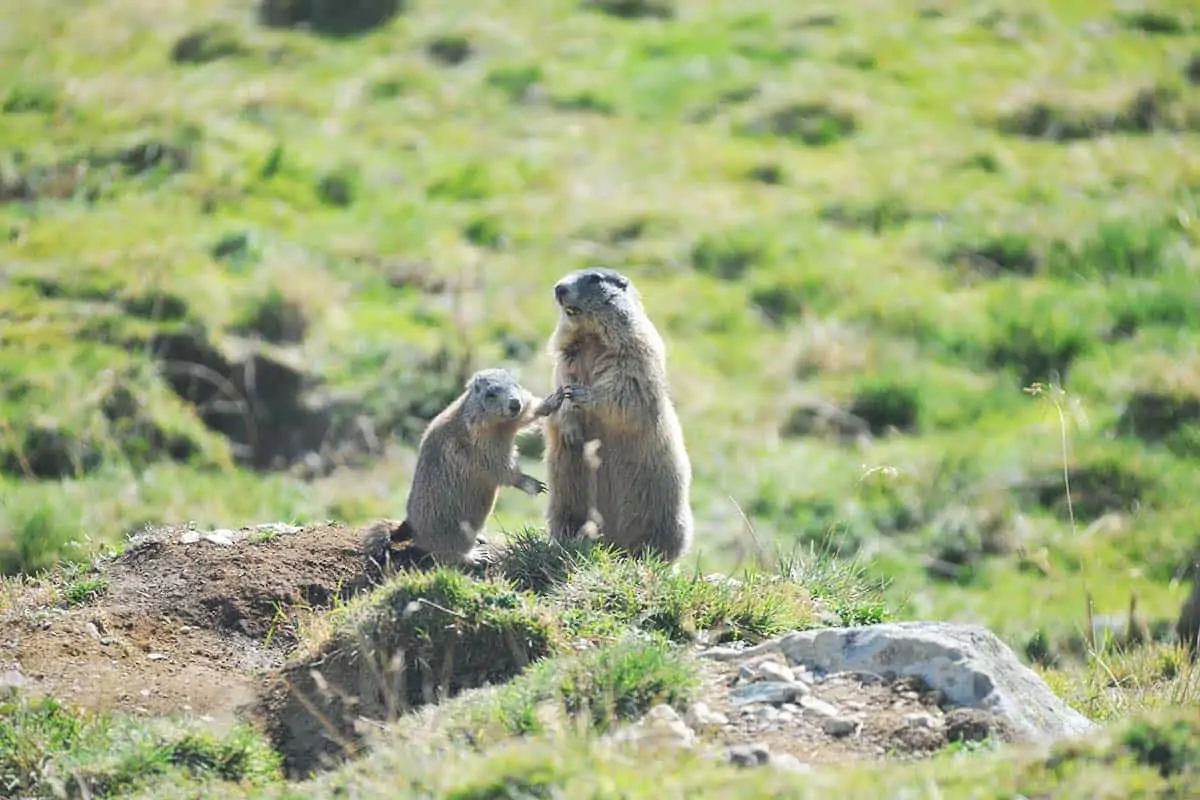 Murmeltiere leben in Familienverbänden mit bis zu 20 Tieren. Diese bestehen aus mehreren Generationen von Jungtieren und Eltern. Kurz nach dem Erwachen aus dem Winterschlaf im März beginnt die Paarungszeit. Nach rund fünf Wochen kommen zwei bis sechs taube, nackte und zahnlose Murmeltiere auf die Welt. So soll sichergestellt werden, dass die Jungtiere bis zum Winter genug Zeit haben, sich Winterspeck anzufressen.