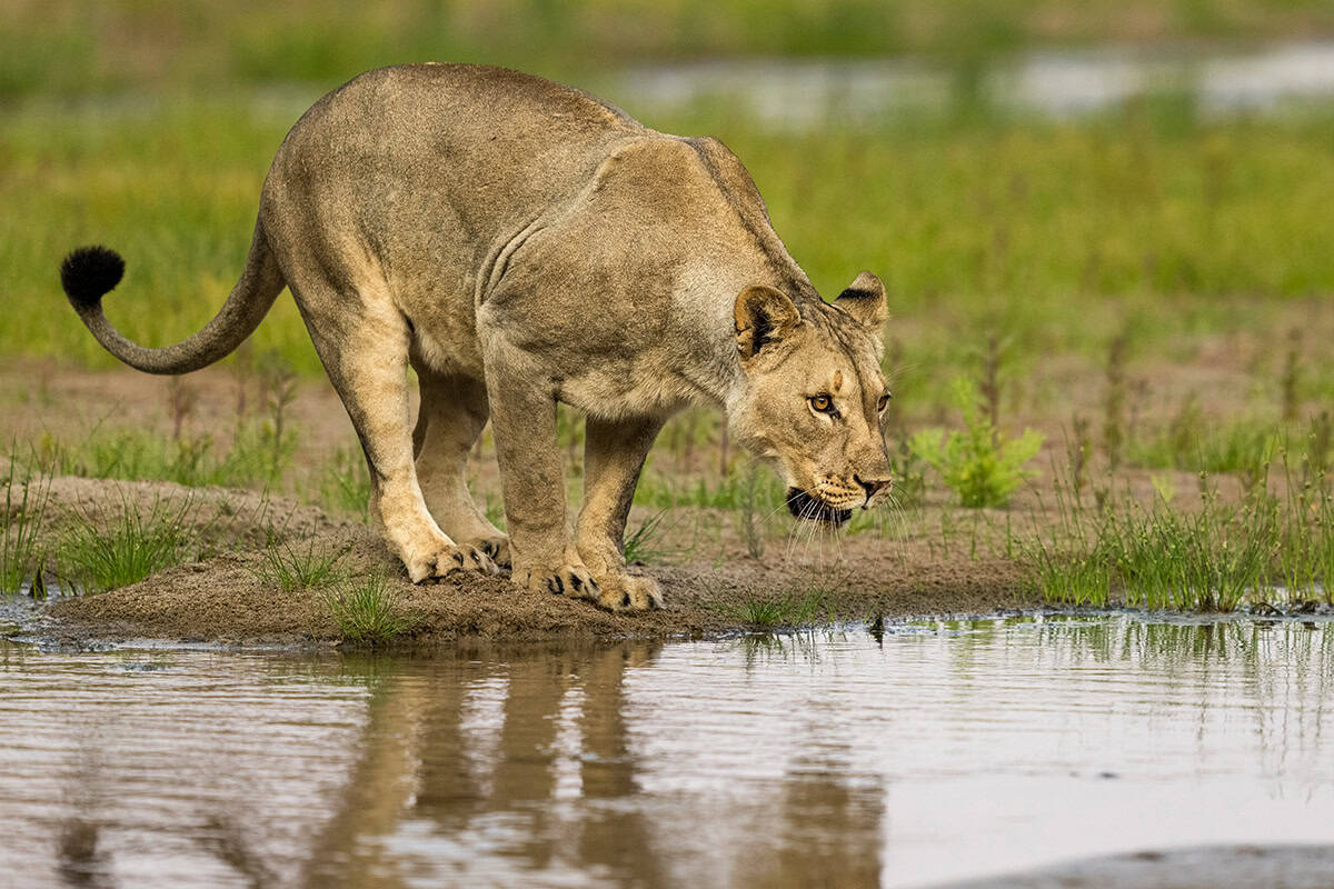Der Löwe lebt oft in sehr trockenen Gebieten. Um nicht zu verdursten, nimmt er Flüssigkeit von seinen Beutetieren auf oder frisst saftige Pflanzen wie wilde Wassermelonen.