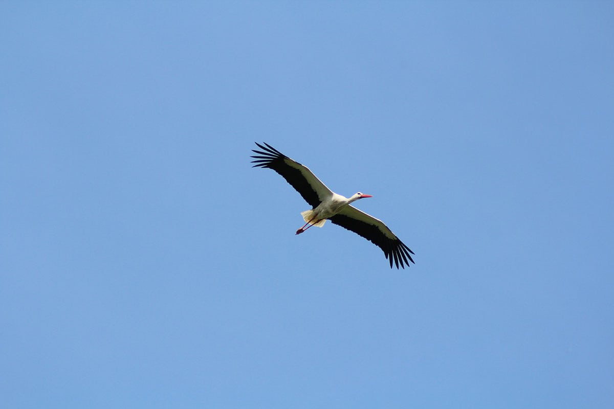Fliegen ist für den Weißstorch keine Hexerei. Mit Hilfe der warmen Luft schraubt er sich hoch hinauf. Dann lässt er sich treiben. Der Weißstorch kann kilometerweit segeln, ohne mit den Flügeln zu schlagen. So spart er viel Kraft.