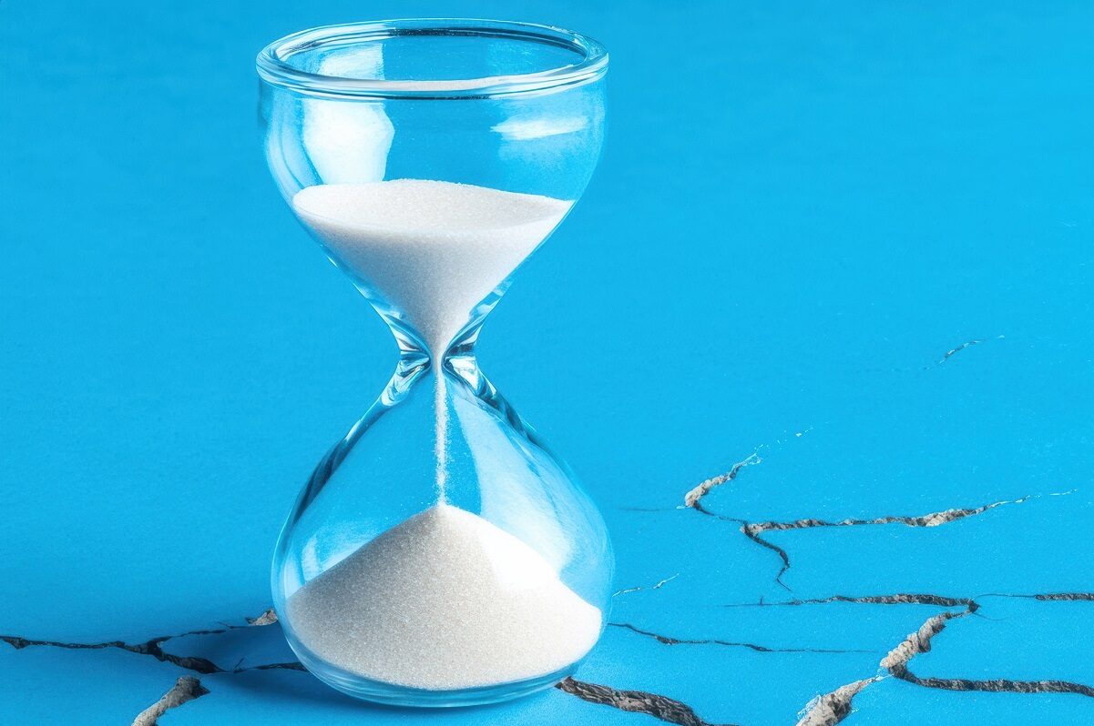Eine Sanduhr mit weißem Sand