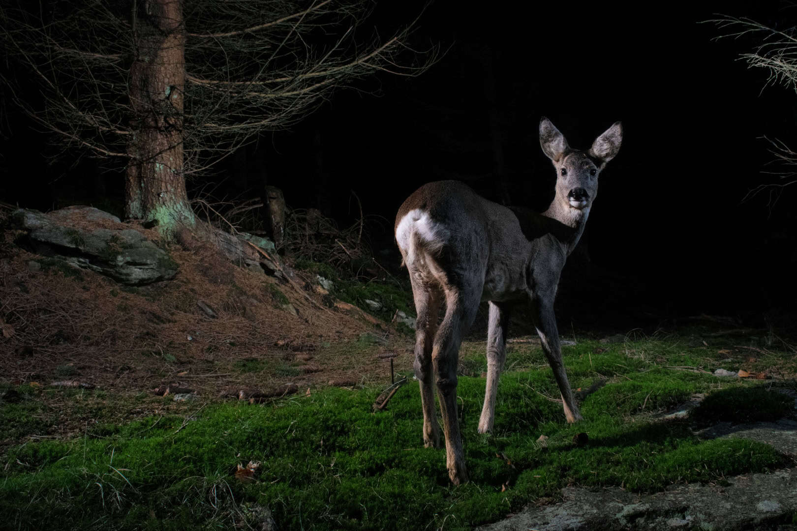 Reh in nächtlicher Lichtung