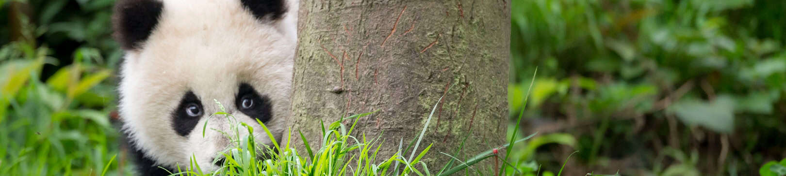 wwf-at_Großer Panda versteckt hinter einem Baum_1620x364 (c) Richard Barrett -WWF-UK
