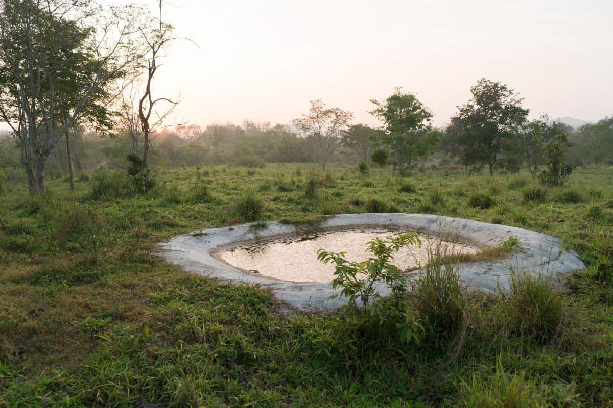 Blick auf eine der künstlichen Wasserstellen, die für die Elefanten im Kui Buri National Park, Provinz Prachuap Khiri Khan, Thailand, angelegt...