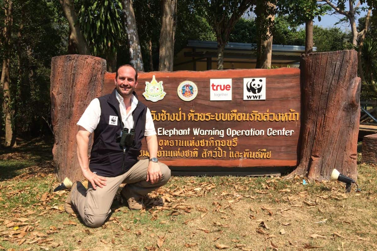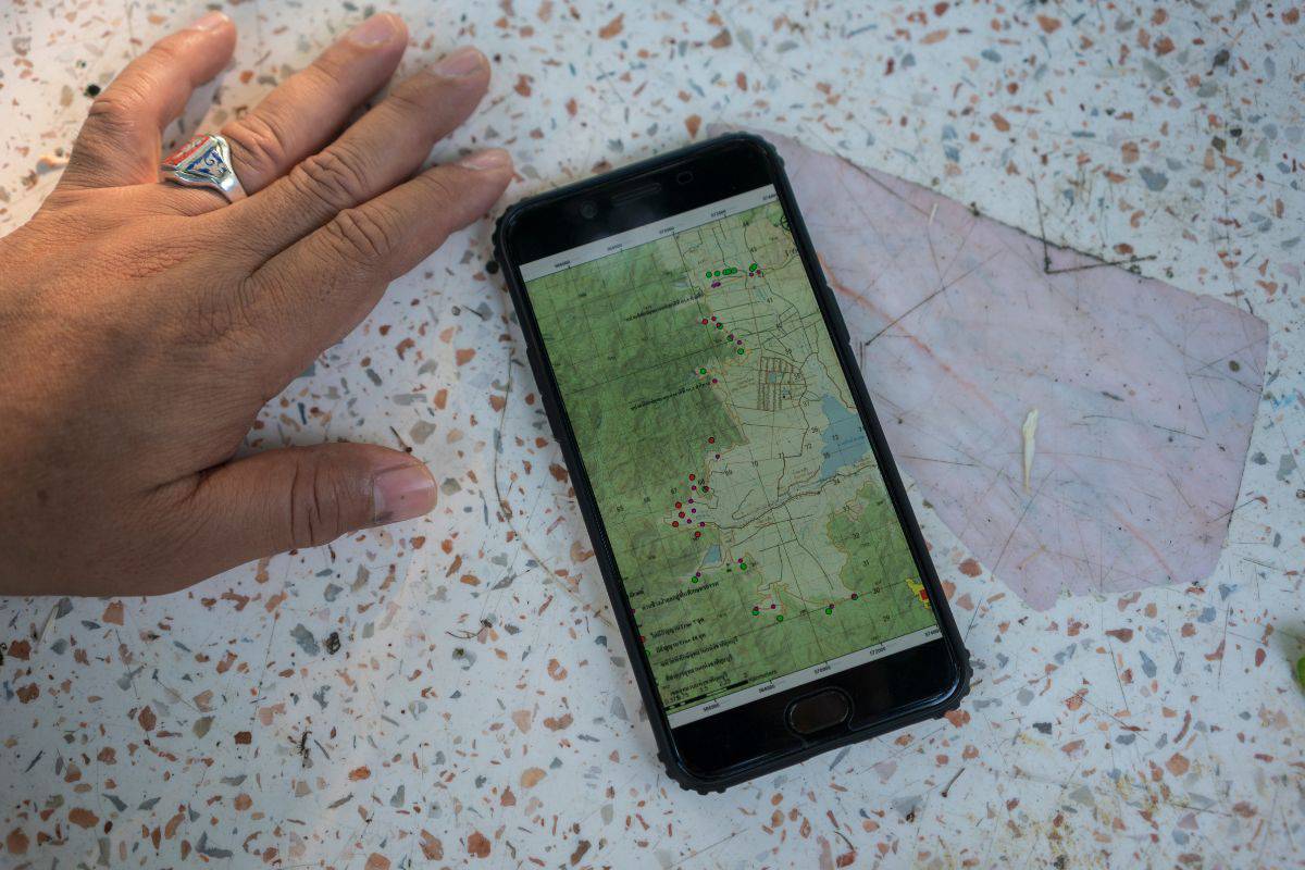 Naret Sueaturien, Leiter der Abteilung Forschung und Wildtierüberwachung des WWF Thailand, zeigt eine Karte mit den Standorten der Fotofallen im Kui Buri Nationalpark, Prachuap Khiri Khan,...