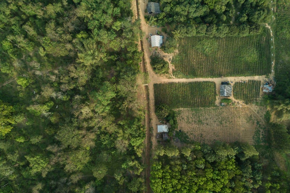 Luftaufnahme des Grabens, der ausgehoben wurde, um Elefanten daran zu hindern, den Park zu verlassen und nahe gelegene Farmen in der Provinz Prachuap Khiri Khan, Thailand, zu zerstören.