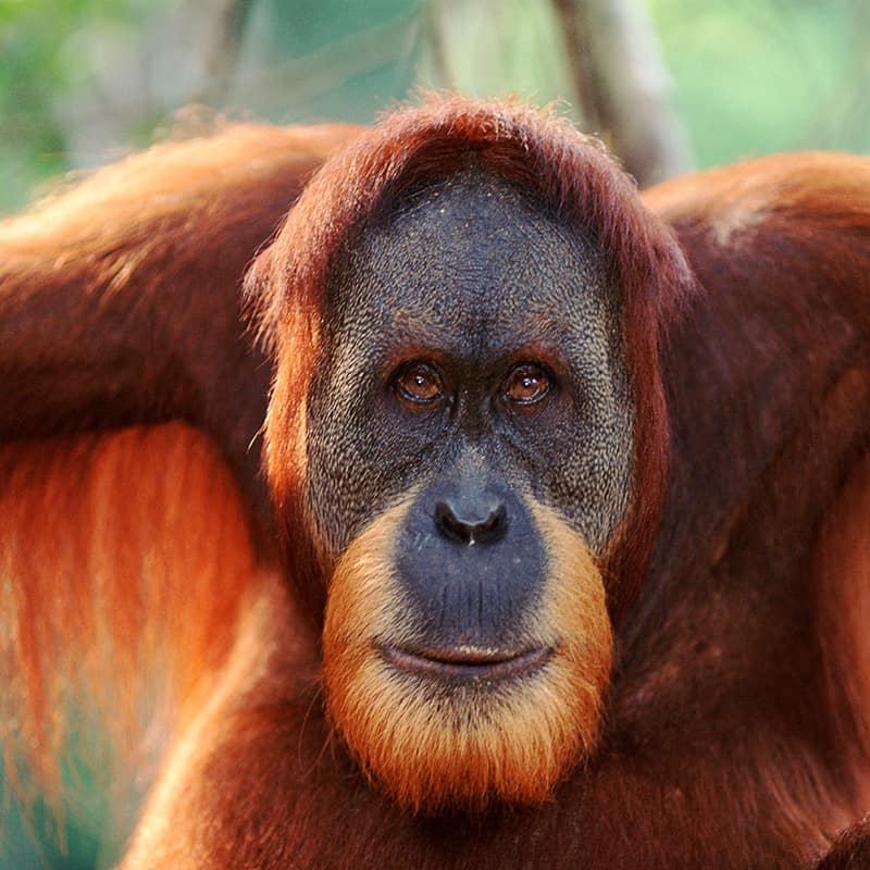 Sumatra Orang-Utan Maennchen closeup (c) Anup Shah