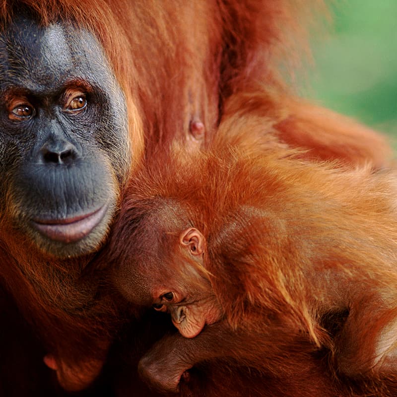 Sumatra Orang-Utan Mutter mit Jungtier (c) Anup Shah