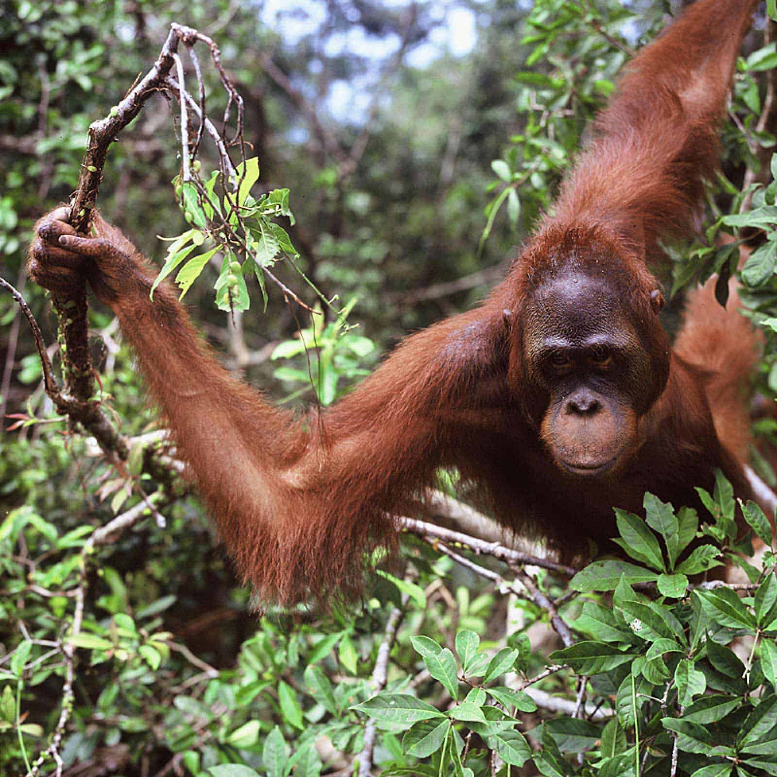 Borneo Orang-Utan in Gebüsch (c) Alain Compost / WWF Canon