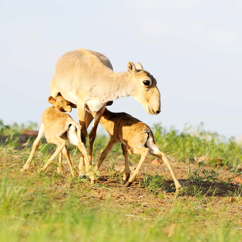 Saiga Antilope Muttertier mit Jungtieren (c) Igor Shpilenok / Wild Wonders of Europe